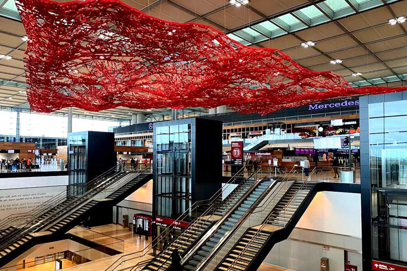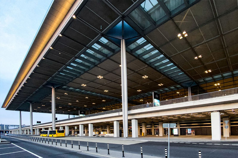 كما يقدّم السوق المركزي تجربة تسوق مميزة، مع تنوّع في المطاعم يلائم جميع الأذواق. وتشمل خدماته صيدليات، مركز معلومات سياحية، مكاتب تأجير سيارات، صالونات، صرافة وغرف هادئة للتأمل أو الصلاة. أما الوصول إليه، فيتوفّر عبر القطارات والحافلات السريعة والداخلية، وحتى مسارات خاصة للدراجات. بفضل هذه التطورات، أصبح مطار برلين براندنبورغ واحداً من أفضل مطارات العالم وأكثرها تقدماً.