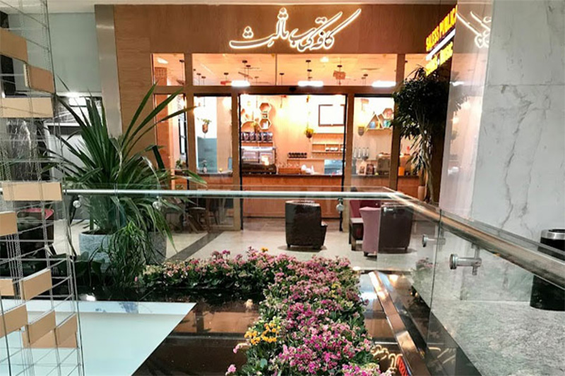 يقع مقهى الكتاب «ثالث» في الطابق العلوي من دار النشر «ثالث»، ويُعَدّ واحداً من أبرز المقاهي الثقافية في طهران، إذ يوفر فضاء هادئاً ومختلفاً لعشّاق الكتب. تصدح موسيقى خفيفة في الخلفية لتجعل الأجواء ألطف للقراءة والحوار.