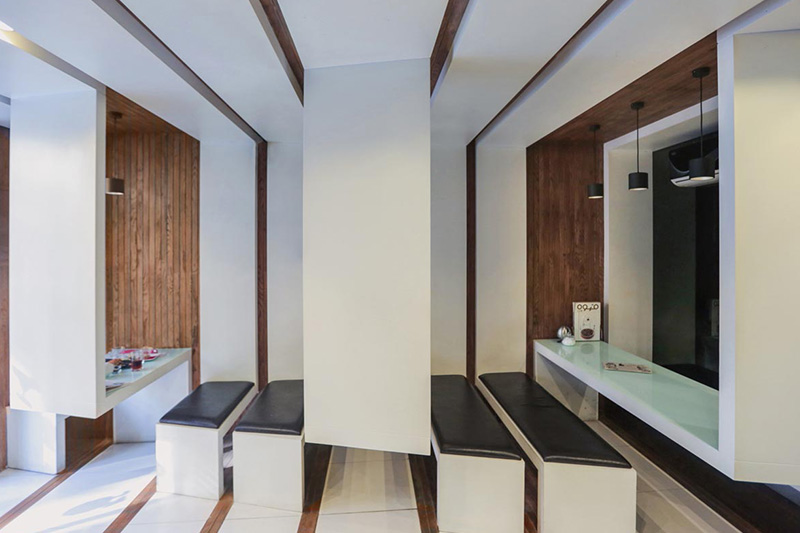 Another branch of this cafe is situated inside the Iran Mall. In both locations, customers can enjoy their drinks or light meals while picking a book from the shelves to read. The cafe menu features a variety of hot and cold beverages, cakes, and light snacks, completing the overall experience.