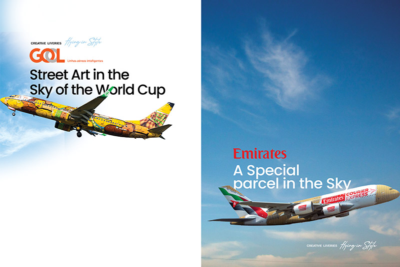 هواپیمای بوئینگ 737-800 شرکت GOL با ریجستر PR-GUO، همزمان با جام جهانی ۲۰۱۴، با همکاری دوقلوهای هنرمند برزیلی اوتاویو و گوستاوو پاندولفو به یک اثر هنری پروازی تبدیل شد. آنها طی یک هفته کار فشرده و با استفاده از ۱۲۰۰ اسپری رنگ، بدنه هواپیما را با مجموعهای از پرترههای زرد و قهوهای رنگآمیزی کردند؛ تصاویری که نماد مردم و هواداران تیم ملی برزیل بودند. این هواپیمای خاص که «Graffiti Jet» نام گرفت، تیم ملی برزیل را میان شهرهای میزبان جابهجا میکرد و رویای «قدم زدن روی ابرها» را برای همه به تصویر میکشید؛ پیوندی منحصربهفرد میان هنر خیابانی و هوانوردی.