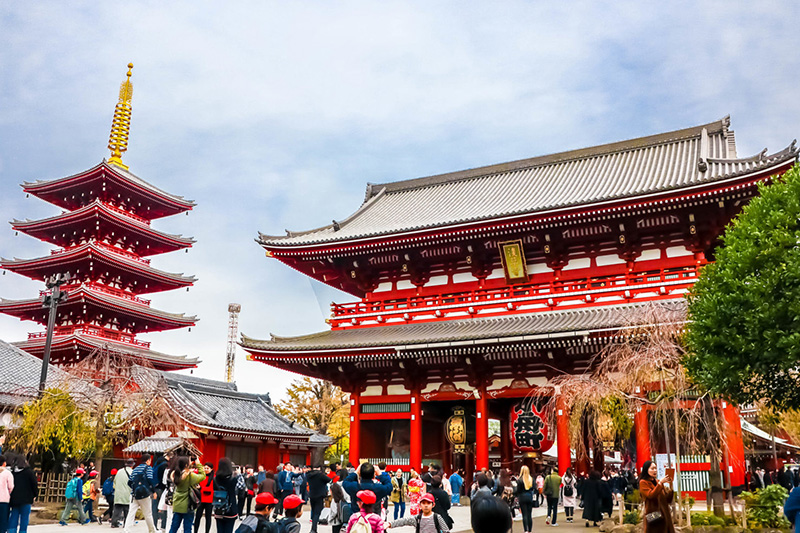سنسوجی، قدیمیترین و زیباترین معابد ژاپن بوده و در توکیو واقع است که در سال ۶۴۵ میلادی ساخته شده و همچنان از پرطرفدارترین جاذبههای پایتخت ژاپن به شمار میرود. مسیر دسترسی به معبد، یعنی خیابان شلوغ ناکامیسه، از دروازه کامیناریمون تا تالار اصلی، مملو از خوراکیهای سنتی و سوغاتیهای رنگارنگ است.